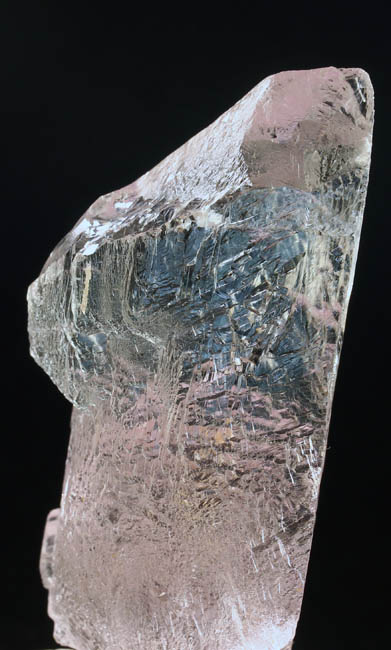 BR106. Kunzite (Spodumene) Urucum m., Corrego do Urucum Pegmatite, Galileia, Rio Doce, Brazil. 8 x 3 x 2.5 cm 127g $250.00 Facet quality, clear, etched crystal with bright luster. Very pale pink on long axis. Camera picked up a bit of pink in this side exposure, more so than in reality. Ex: Arnold S. Goldstein coll. #433 . Ex Argentum Auctioneers #433, . Ex: Earth’s Treasures 3-2009. |