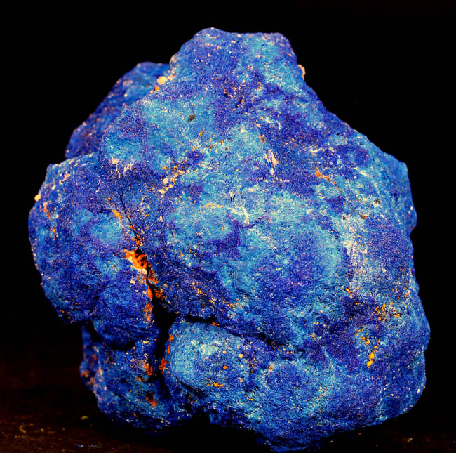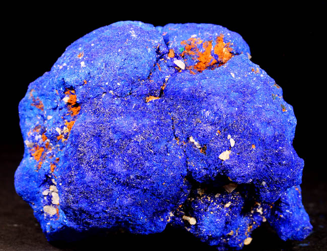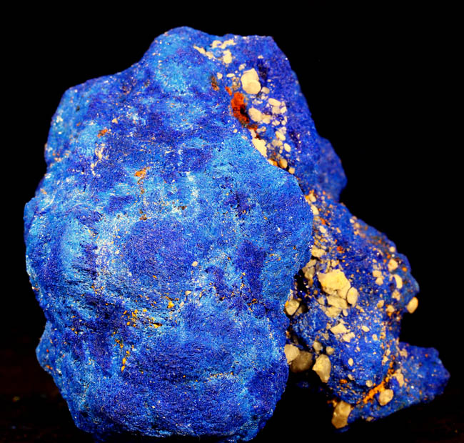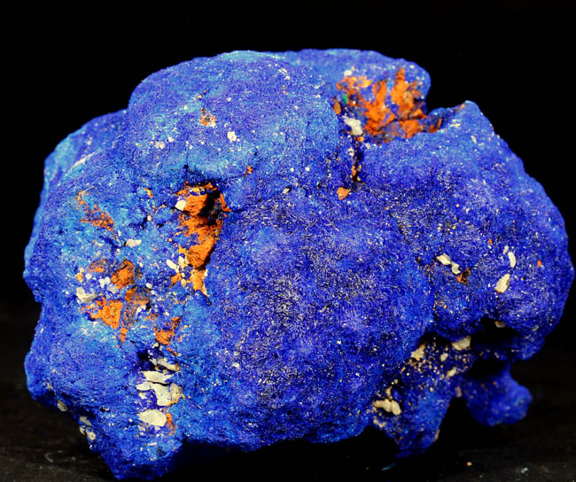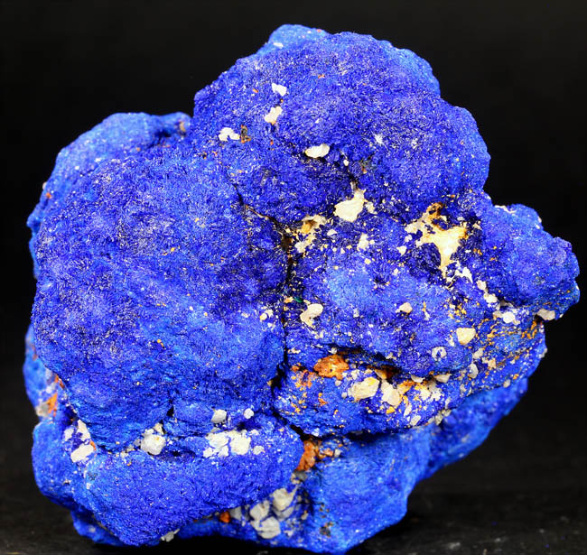 BR505. Azurite. Burra Burra mine, North Mount Lofty Ranges, South Australia, Australia. 7 x 6 x 4.5 cm 265g $250.00 Bright blue globular ball of micro crystalline azurite...solid azurite. Specimens of azurite were discovered in a clay zone in the early 70s when this old mine was open cut. Ex: CK Minerals. Ex Mineralogical Research; purchased April 2013 I photographed it from all sides. |