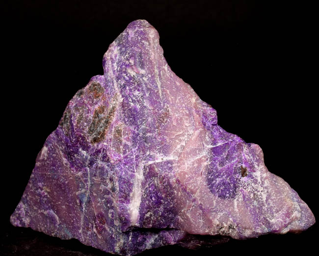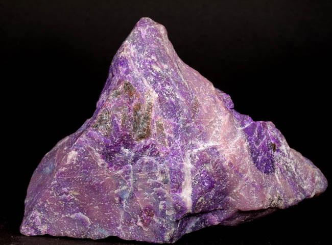 BR622. Sugilite. Wessels Mine, Joe Morolong Local Municipality, John Taolo Gaetsewe District Municipality, Northern Cape, South Africa. 10.5 x 7 x 4 cm 280g $500.00 Massive block of purple sugilite, lapidary quality. Ex: Uncarved Block |