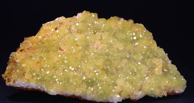 JC9919. Pyromorphite. Hard Rigg Edge, Hartside, Cumbria, United Kingdom. 4 x 10 cm 95g. $35.00. Coating of small crystals as seen. Waxy luster, not much sparkle. RESERVED |