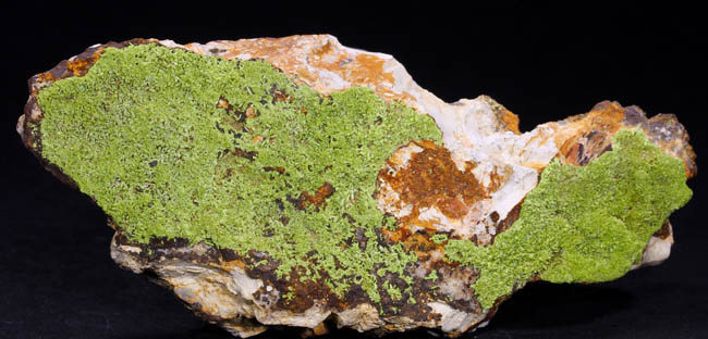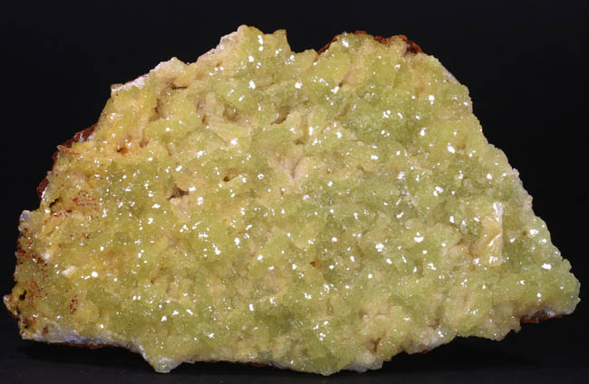 JC9478. Pyromorphite. Pyromorphite mine, Mineral claim 24456, Mt. Shoobridge, Norther Territory, Australia. 5 x 6.8 cm 223g. $115.00. A nearly solid mass of yellow green/lime green crystals. These are from a little mining venture to procure pyromorphite specimens from this prospect. The find is quite limited, and very few specimens were produced. A rather different locality and not related to the Rum Jungle locality. Rarely seen material from a remote and little known location, the location was a small prospect long abandoned that was worked for specimens for a short time in the early 1990s. Both side are literally and liberally coated with hexagonal crystals, interspersed with a druze of pyromorphite crystals. The crystals are not lustrous, as is typical for this location. |