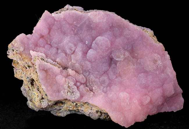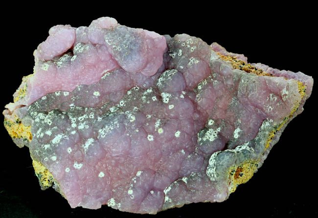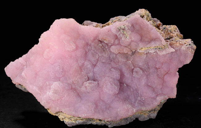 JC9770. Smithsonite. Refugio mine, Choix, Sinaloa, Mexico. 5 x 10 cm 189g. $275.00. Pink to slightly lilac pink specimen from this now exhausted locality. Specimen is not back lit. Nice color, sort of waxy luster. |