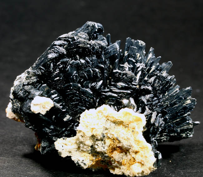 JC11952. Hubnerite. Brandberg West Mine?, Brandberg Area, Dâures Constituency, Erongo Region, Namibia. 2.5 x 5.5 cm 156g $30.00 A single, fairly well formed crystal. Specimens of this quality from here are quite rare. |