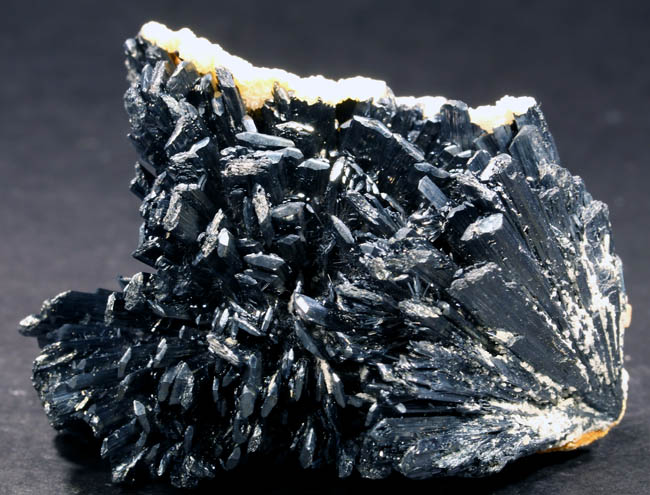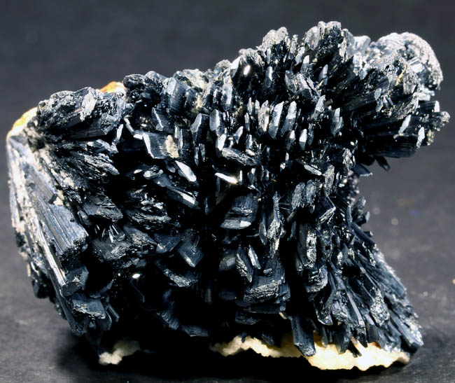 JC9949. Stibnite. Old Herja mine, Chiuzbaia, Baia Mare, Maramures, Romania. 4.5 x 5 x 6 cm 127g. $50.00. Group of crystals... Crystals are bright and lustrous. Some damage to some of the terminations. |