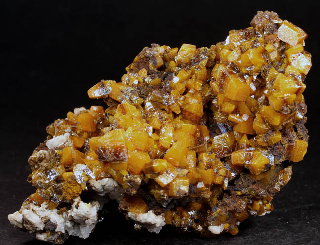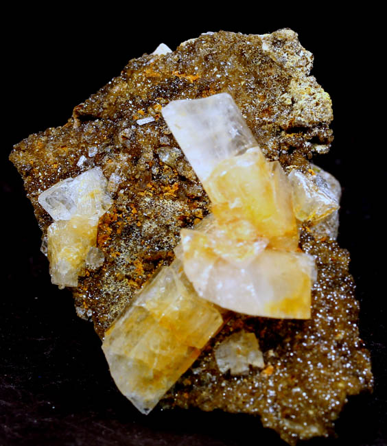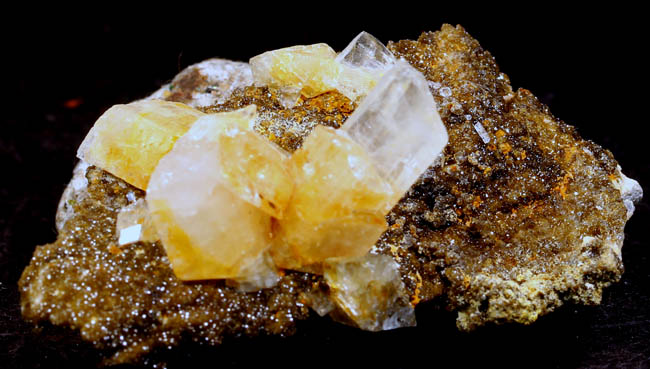 BR360. Mimetite. Tsumeb mine, Tsumeb, Namibia. 3.5 x 3.5 x 3 cm 55g $275.00. Stout yellowish amber crystals from the "Gem Pocket". 1971 saw the discovery of the famous Mimetite “Gem Pocket", one of Tsumeb's great pockets. According to one dealer, he states "Indeed, according to most people who score such things, this find has not been surpassed since by any Mimetite from any location for size and quality of transparency" Ex: Donald K. Olson Minerals Purchased: 10-2001 |