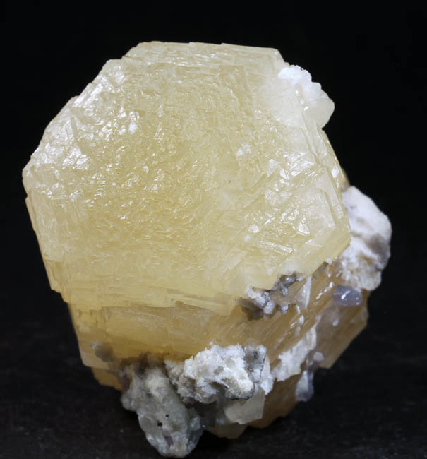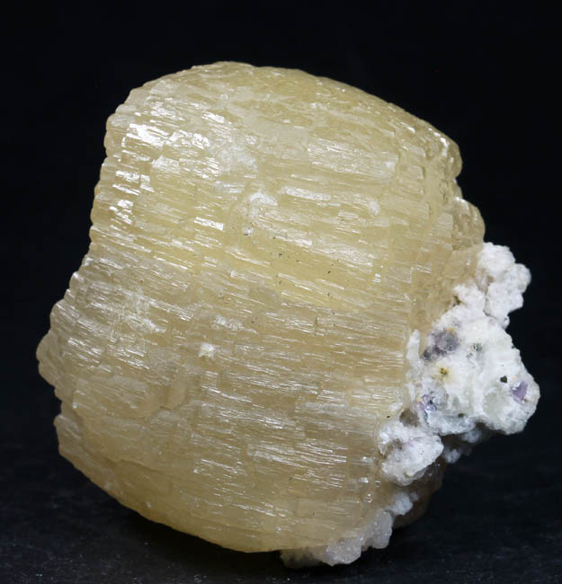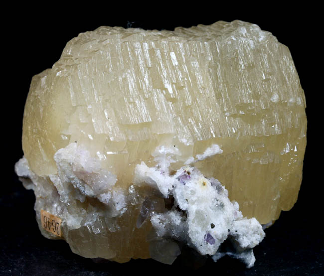 JC11870. Hydroxlherderite? Minas Gerais, Brazil. 3 x 6 cm 31g $20.00 Terminated crystal. Another one from the collection I purchased a few years ago, with no label. Crystals are on a very sparkly matrix of an unknown mineral, to me at least. |