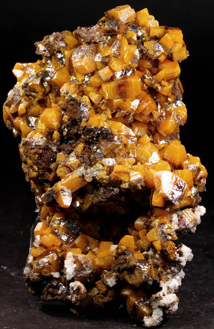 JC13929. Vanadinite. Puzzler Mine, Adams Mine group (Adams claims), Castle Dome District, Castle Dome Mountains, Yuma County, Arizona. 11.5 x 6 x 6 cm 399g $110.00 There is one area near the center where the vanadinites were apparently knocked loose. Easily visible in the photos. |