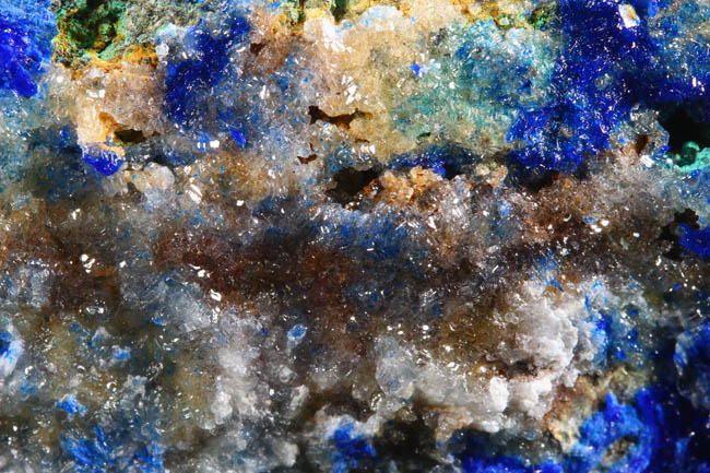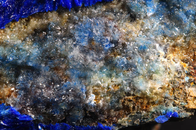 JC13781. End area...clear to light blue area is micro crystalline anglesite? & unknown. |