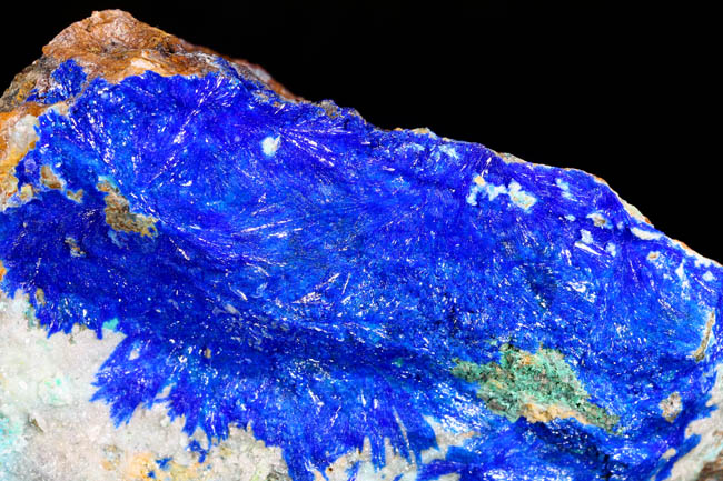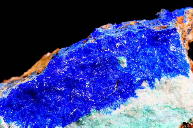 JC13780. Close up of the far right, showing the altered brochantite and colorless micro crystals (anglesite?). |