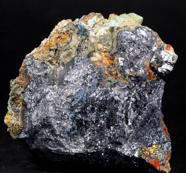 JC13795. Galena, Linarite, anglesite? & ? Dispozitch mine, Silver Star Mining district, Mineral county, Nevada. 2 x 4 cm 29g $10.00 Small ore sample, composed of mostly "steel" galena, quite sparkly. RESERVED |