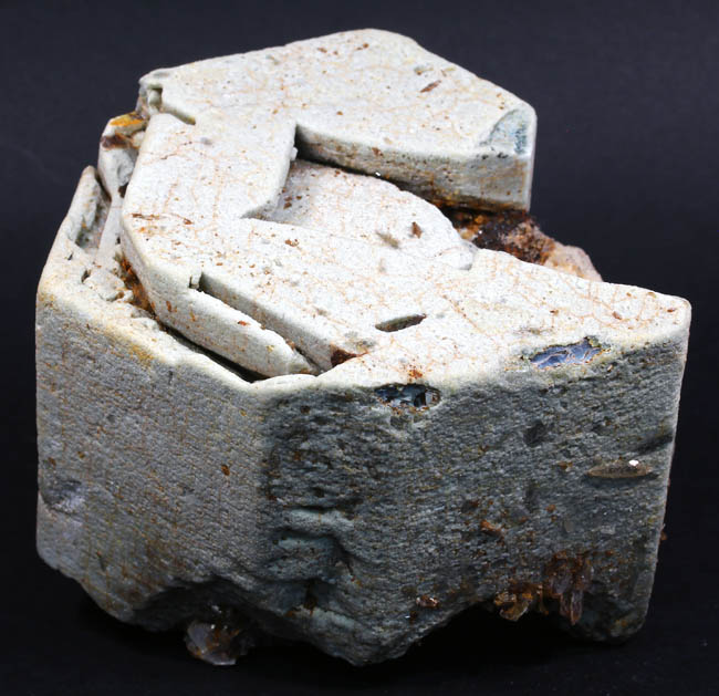 JC11855. Siderite. Panasqueira Mines, Covilhã, Castelo Branco, Portugal. Approximately 7 x 7 cm 549g $90.00. Some nice big siderite crystals...a classic from Panasqueira. Large rhombohedral crystals. Bit of quartz and ferberite on back side. |