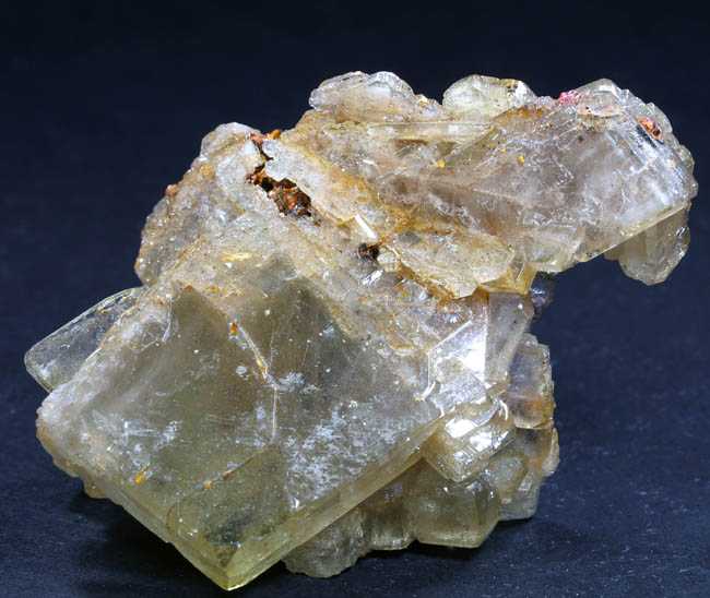 JC13449. Barite, calcite. Mahoning mine, Ozark-Mahoning group, Cave-In-Rock Sub-District, Hardin County, Illinois. 9 x 10 x 2.5 cm 267g $75.00 I purchased this one from Harvey Gordon Minerals, December 1988, who got it from the mineral dealer Harry Sering, Indianapolis. Collected in the 1960's. Nice clear bladed barite crystals that formed on a mass of scalenohedral calcite crystals, which entirely coat the back side. |