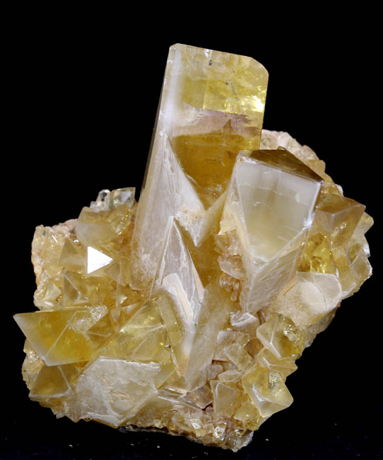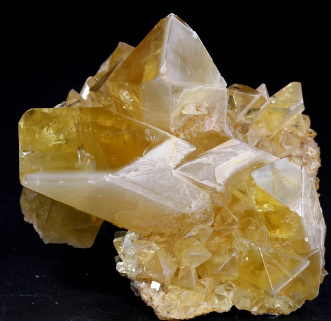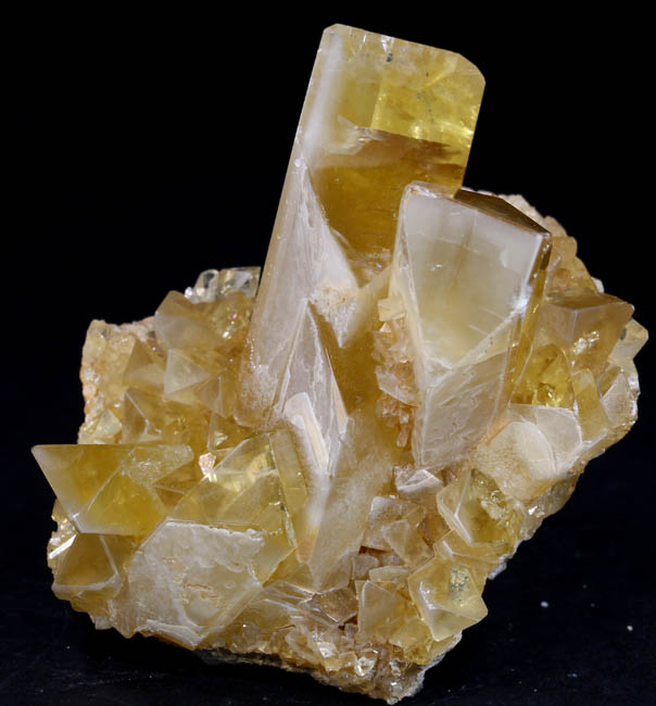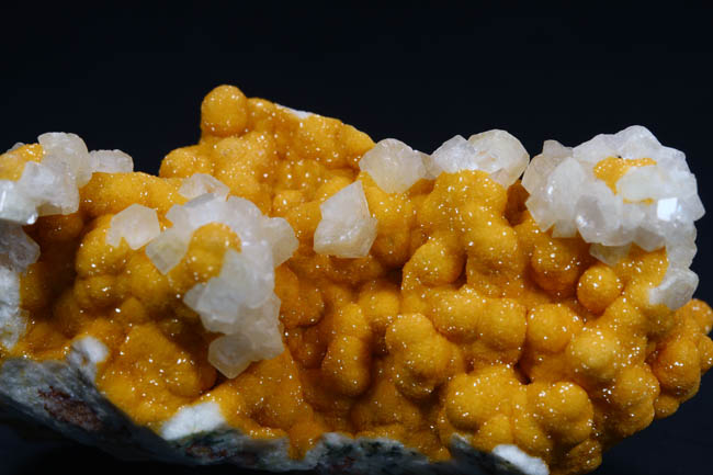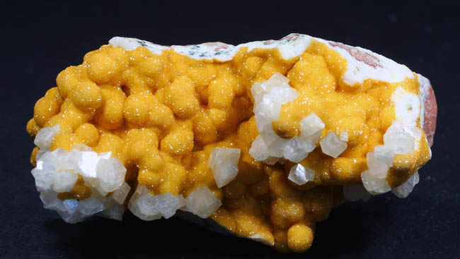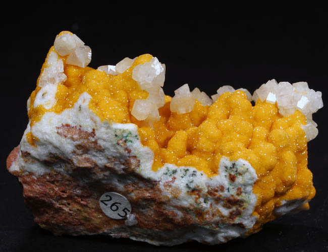 BR400. Calcite on dolomite (cadmium dolomite?). Tsumeb mine, Tsumeb, Namibia. 6 x 3 x 4 cm 83g $225.00. Ex: Marion Stewart coll. CalDo-1-8080. Ex: Andy Seibel Minerals, Coll #265 Yellow dolomite with white calcite rhombs scattered around on it. RESERVED |