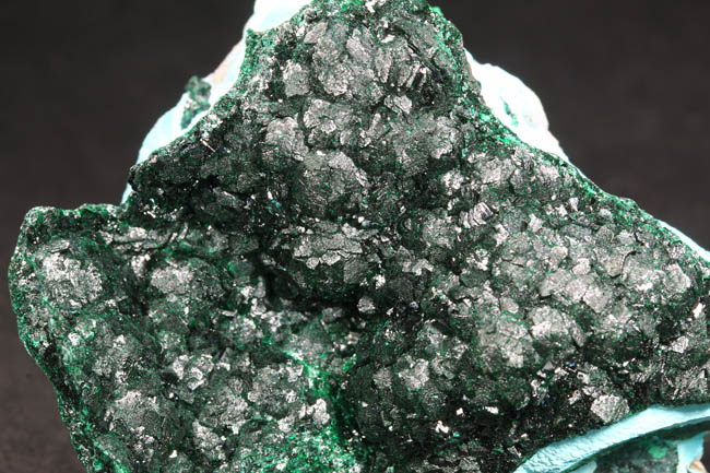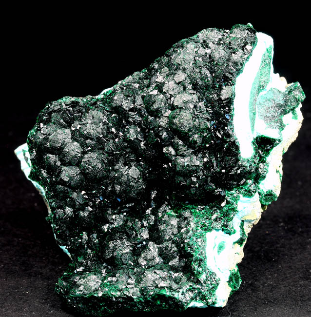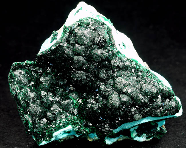 BR93. Malachite (primary), chrysocolla. Mashamba mine, Kapata, Katanga, Republic of Congo. 6 x 5 x 3 cm 90g. $95.00 Blocky crystals on chrysocolla on matrix. Ex: Fraziers Minerals. Actual blocky, sort of cubic looking crystals instead of the usual acicular crystals from here. These are quite a bit rarer. |