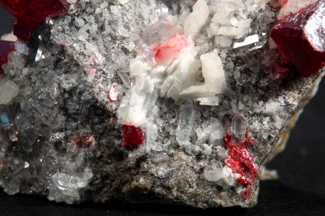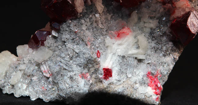JC12055. Back side. The top most cinnabar crystal has had its back sheared off, although not noticeable from the front. |