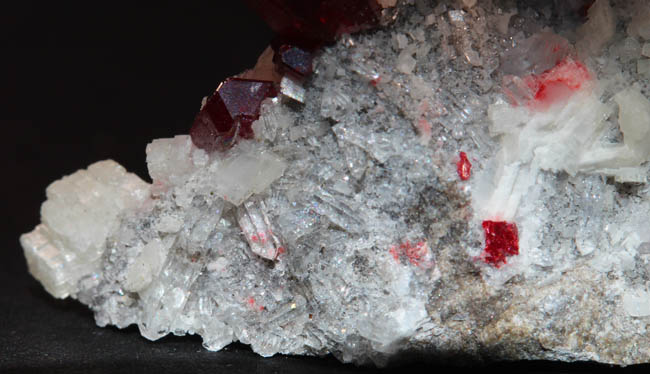JC12055. Close up of left side. Note tiny, transparent quartz crystals lying rather flat on the matrix. |