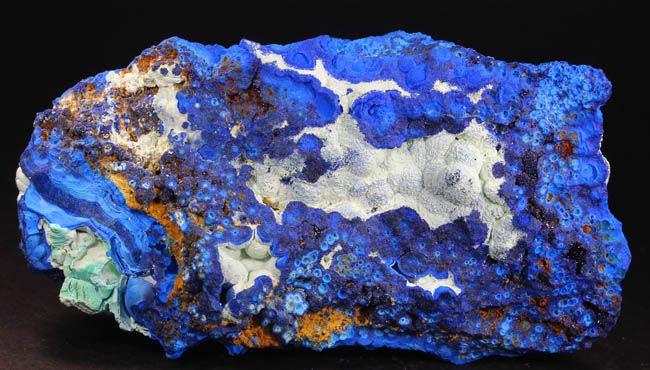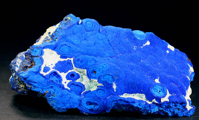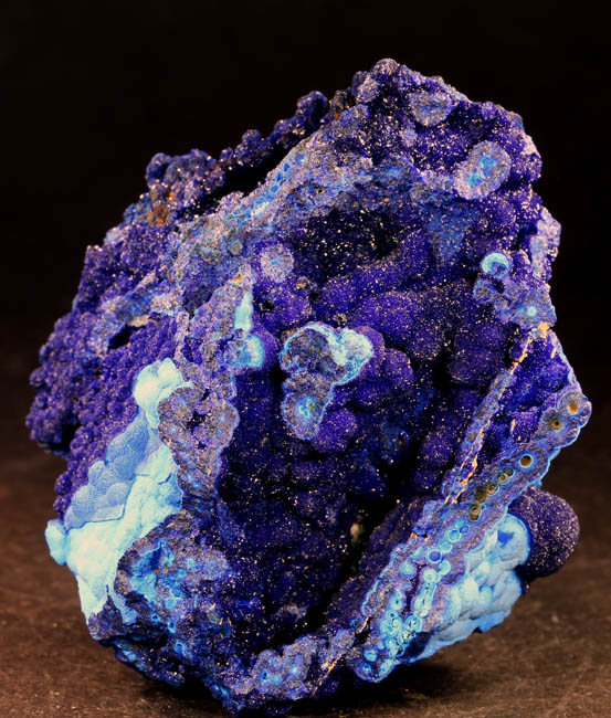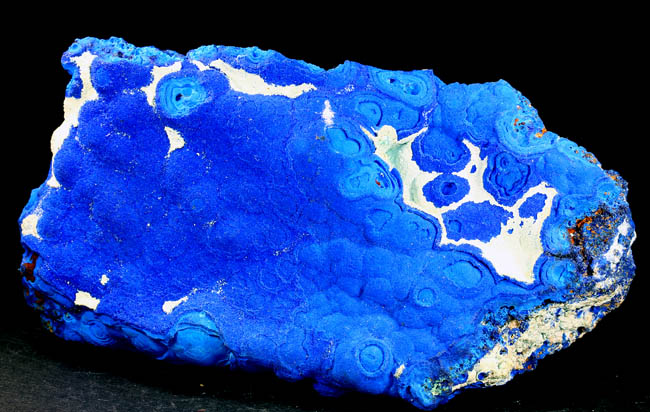 BR346. Azurite. Junction shaft, Copper Queen mine., Bisbee, Cochise county, Arizona. 10.5 x 5.5 x 3.5 cm 283g $975.00 Classic bright blue botryoidal. Ex: A.L. McGuinness coll. Ex: Steve Perry Minerals. Purchased 8-2005. |