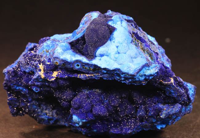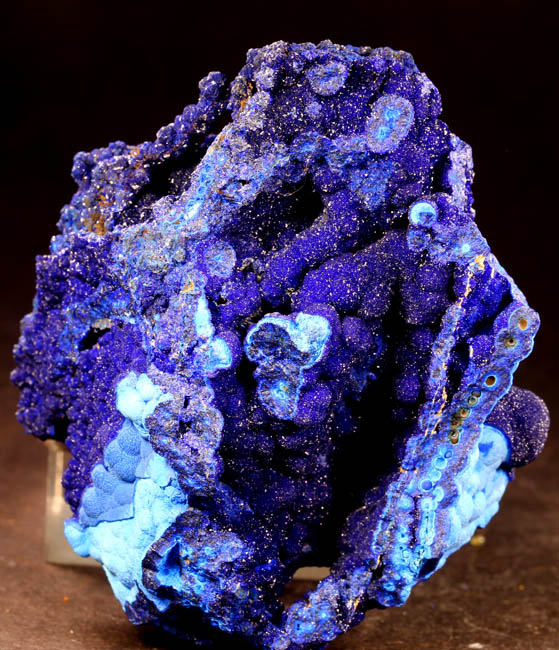 BR544. Azurite. Copper Queen mine, Bisbee, Cochise county, Arizona. 7 x 6 x 3 cm 133g $350.00 Drusy crystals with lighter blue patches...classic Bisbee. Ex: Joe Dague coll.; Ex: Claude H. Yoder coll.#833 Purchased: 11-1999 Ex: Mineralogical Research Purchased: 8-2014 |