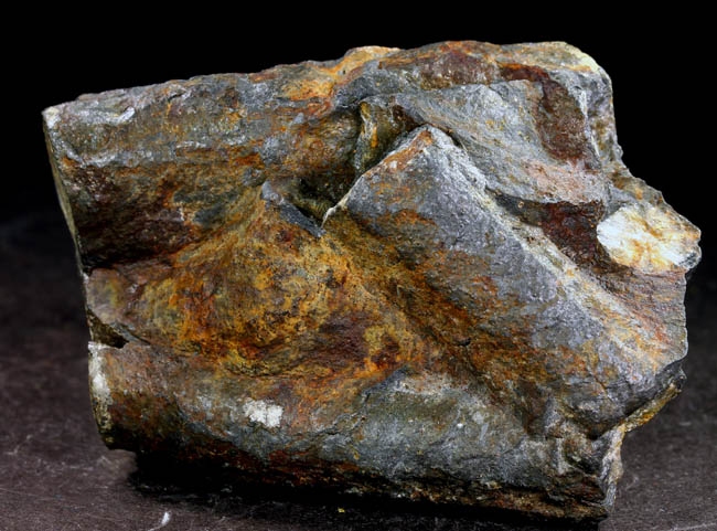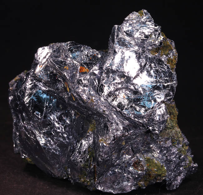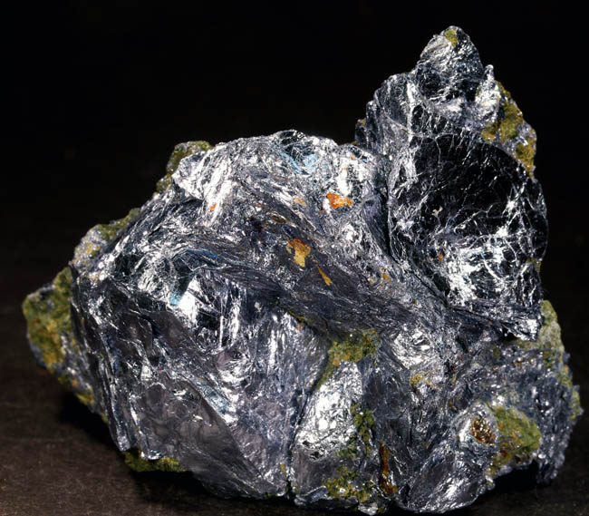 JC13928. Molybdenite. Pine Creek mine, Bishop tungsten district, Inyo county, California. 7 x 5 x 6 cm 272g $65.00 C: 2001. For a brief period in the early 2000's the road to the upper Pine Creek mine workings was open. This enabled me to get underground, where in one of the drifts I ran across a vein in the ceiling about 18 inches wide that went entirely across to the sides of the drift. This one is from that vein. The crystals are not well defined, but make up nearly solid masses of interlocking crystals. These are an exclusive to my web site. I made a few more trips up there, and collected quite a few pieces from various workings in the mine. The road is now totally wiped out by failure of the cribbing that used to uphold the road in several places, being wiped out by heavy rains/landslides. |