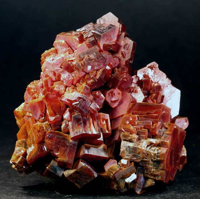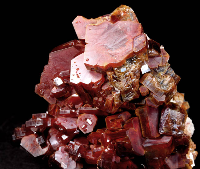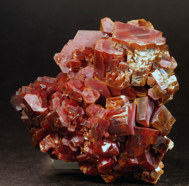 JC13921. Vanadinite. ACF mine area, Mibladen mining district, Midelt, Khenifra province, Meknes-Tafilalet region, Morocco. 8.0 x 8.0 x 3.5 cm 397g $250.00 The largest crystal on top is 2.5 cm (1 inch) . No damage, although the topmost crystal has some growth features on the side easily seen in this photo. Color is a dark red, with slight hints of brownish on a few crystals. Nice specimen. |