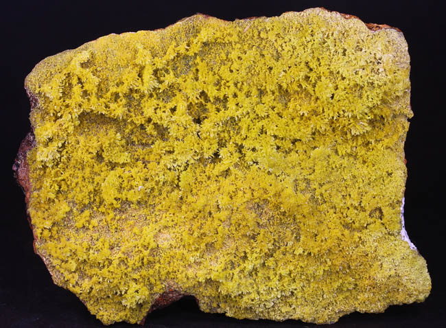 JC13922. Pyromorphite. Blackwood Open Cut, Broken Hill, Broken Hill district, Yancowinna County, New South Wales, Australia. 10 x 8 x 1 cm 136g $175.00 A flat plate, with the front completely covered with micro crystals in divergent sprays. Back side has scattered larger crystals. |