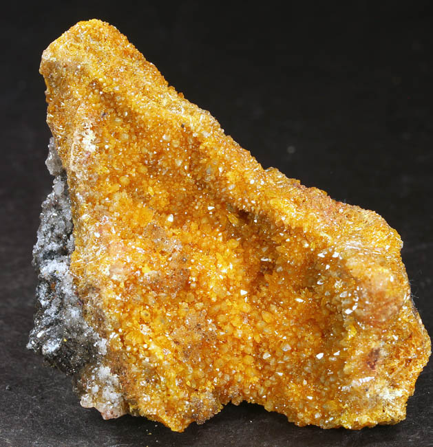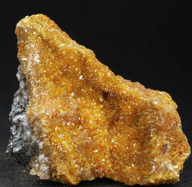 JC13925. Mimetite. Santa Eulalia, Chihuahua, Mexico. 5.5 x 4.5 x 2.6 cm 78g $40.00 Prismatic yellow orange crystals. They are small and very sparkly. Some like this were around about 2010, and quickly vanished from the market. These showed up at Tucson this year in one dealers venue. He only had half a dozen or so of decent quality, and they apparently are from the same area in the mine and recently collected,....he wasn't sure which mine, but thought the San Antonio mine. The last 3 of these I have are offered here RESERVED |