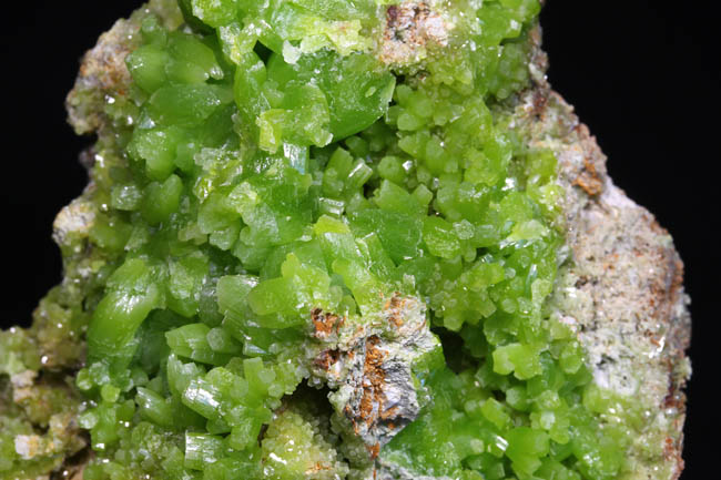 JC9927. Pyromorphite. Barbara vein, Hofsgrund, Schauinsland district, Black Forest, Baden-Wurttemberg, Germany. 3 x 4 cm 21g. $15.00. Lime green crystals as seen in this photo. |