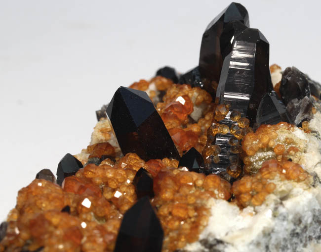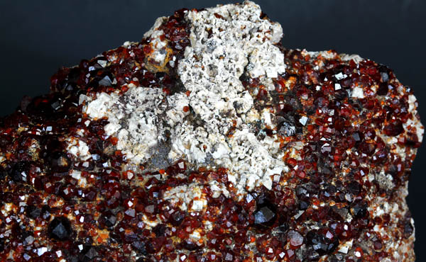 JC6713. Close up of the side with the albite crystals and spessartines growing on them. |