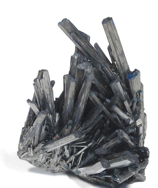 JC6913. Stibnite, Raura district, Cajatambo province, Lima dept., Peru. 3 x 6.2 cm 48g $30.00. 6.2 cm tall group of silky luster crystals. Collected from Raura back in the 1990's. Ex Crowley collection #JAC1125. I photographed it from front back and sides. |