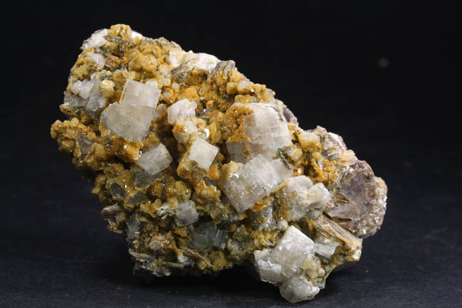 JC9503. Andradite (demantoid), Green Fire mine, New Idria district, Serpentine dome, San Benito county, California. 5 x 9 cm 284g. $60.00. Pale yellowish green crystals on a serpentine/crossite? matrix. ON SALE, TAKE 60% OFF THE MARKED PRICE RESERVED |