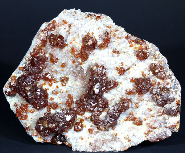 JC9479. Spessartine, quartz. Wushan spessartine mine, Tongbei, Yunxiao county, Zhangzhou prefecture, Fujian prov., China. 4 x 7 cm 68g. $55.00. Sawn back. Light smoky quartz crystals with gemmy spessartine. ON SALE, TAKE 60% OFF THE MARKED PRICE. |