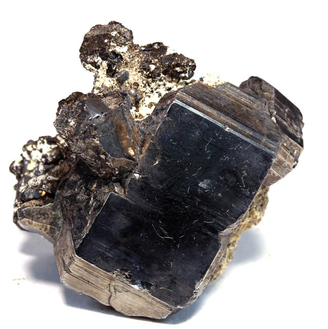 JC12024. Bournonite. Yaogangxian Mine, Yaogangxian W-Sn ore field, Yizhang Co., Chenzhou, Hunan, China. 3 x 3.8 cm 68g $150.00. A squarish crystal trying to be doubly terminated and not quite making it. |