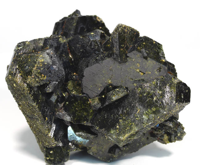 JC13362. Epidote. Khowrin mountain, Kuhandan village, Saveh town, Tafresh county, Markazi province, Iran. 9 x 10 x 2 cm 344g $135.00. Brilliant luster, dark green, prismatic crystals completely coating the matrix. These came out a several years ago, and the deposit is supposedly cleaned out as of 2006. |