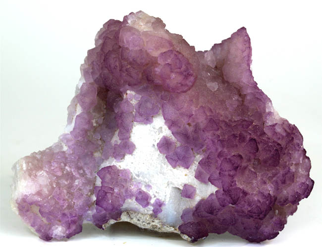 JC11600. Fluorite on quartz "casts" after calcite. La Fluorita Dulcita prospect, nr. Tombstone, Cochise county, Arizona. 3.7 x 5.7 x 7.5 cm 113g. $175.00. A commercially worked little "mine" where these fluorites are collected. Crystals are octahedrons for the most part. Specimen is not back lit, it just tends to be a bit translucent. |