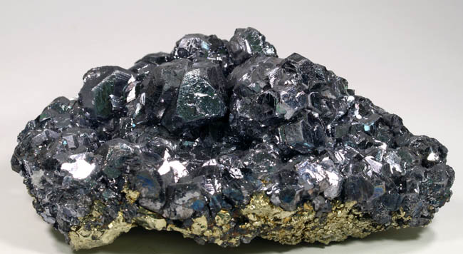 JC7569. Galena on pyrite. Huanzala, Huallanca district, Dos de Mayo province, Huanuco department, Peru. 6.5 x 10 cm 487g $45.00. An excellent galena from Huanzala with brilliant luster crystals solidly coating a pyrite matrix. Collected in 2015. |