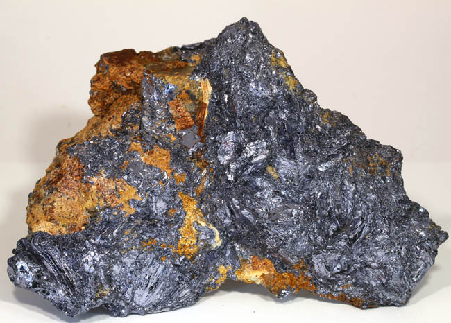 JC13002. Molybdenite. Pine Creek mine, Annex claims?, Bishop district, Scheelite, nr. Bishop, Inyo county, California. 10 x 6 x 3.5 cm 334g $75.00. Specimen is about 80% molybdenite. A complex mass of crystals. The largest, on the side, is 3 x 4 cm. I collected these in 2012, from underground in the upper workings of the mine. Not sure of the exact level. These came from the ceiling in a drift in these upper workings...I think where the old Annex claims were first filed many years ago. These are some of the finest molybdenite specimens to come from the Pine Creek mine. The specimen is nearly solid molybdenite, with crystals on the front and back. |