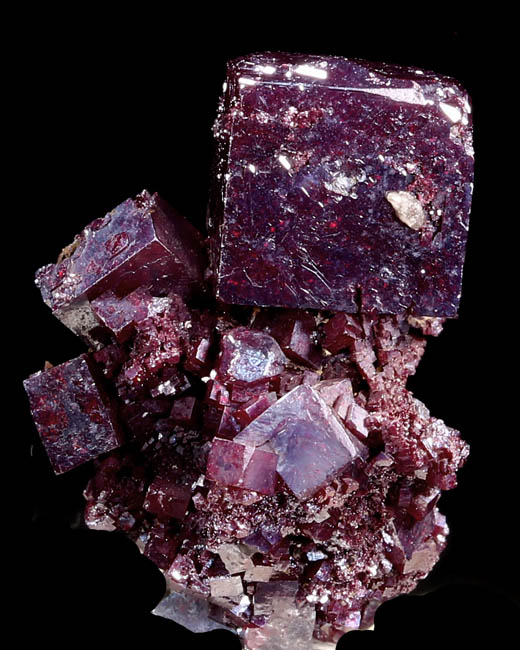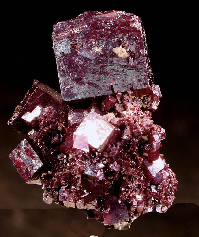 JC13935. Fluorite. Stoneco Auglaize Quarry, Junction, Paulding County, Ohio. 5.5 x 5 x 2 cm 110g $185.00 A choice miniature with the bright purple secondary fluorite cubes on the brown underlying smaller fluorite cubes. Collected by John Medici, Summer 1999. I purchased it from him at the Tucson show in January 2000. Ex Crowley collection #: JAC1463. A miniature of this quality from here is quite rare these days. RESERVED |