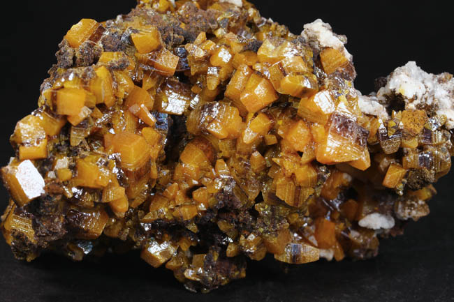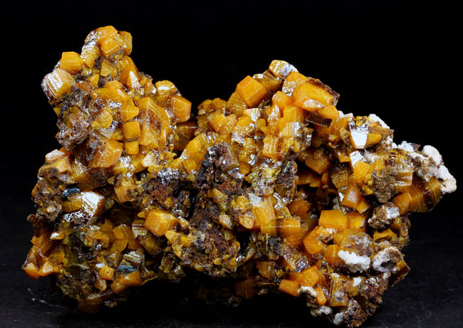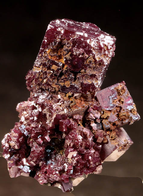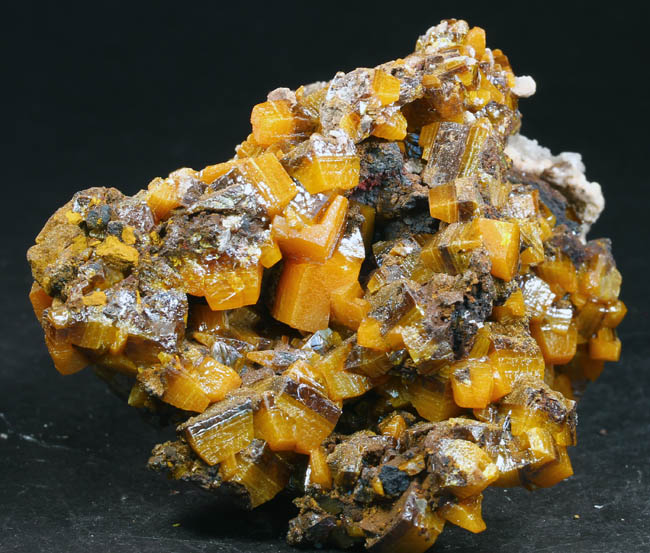 JC13929. Vanadinite. Puzzler Mine, Adams Mine group (Adams claims), Castle Dome District, Castle Dome Mountains, Yuma County, Arizona. 11.5 x 6 x 6 cm 399g $110.00 There is one area near the center where the vanadinites were apparently knocked loose. Easily visible in the photos. |