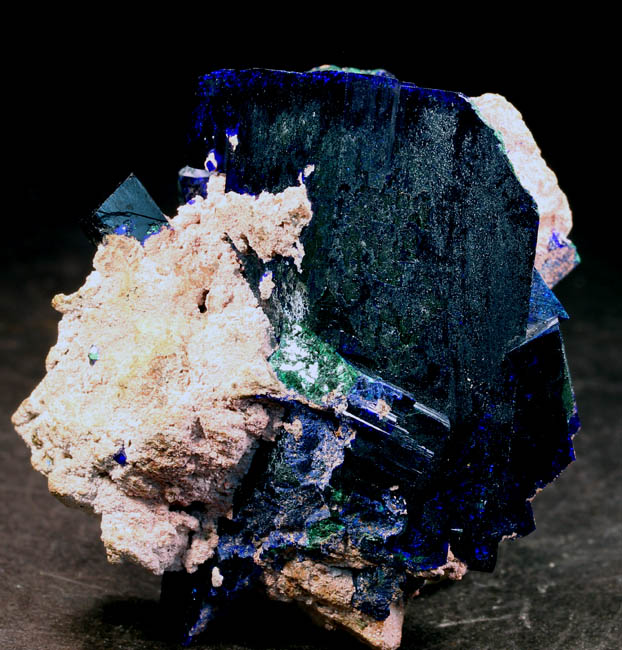 BR362. Azurite. Tsumeb mine, Tsumeb, Namibia. 5 x 4 x 4 cm 90g $850.00 A 4 cm tall x 3 cm wide blocky crystal, bright luster. Altering a bit to malachite. Top quality. Ex: Luis Leite Minerals. Ex: Earth’s Treasures Purchased: 3-2005 |