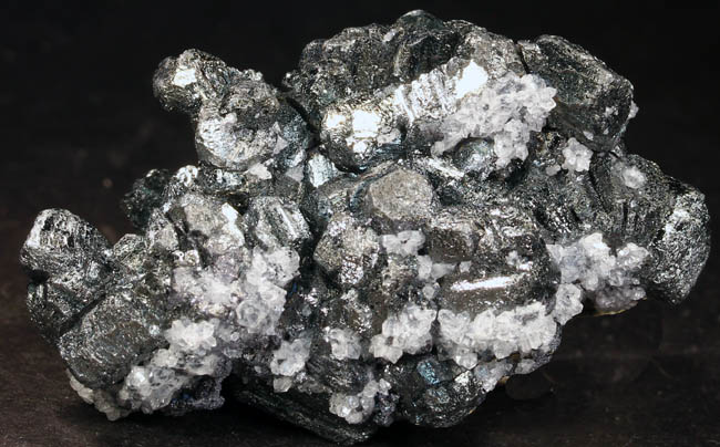 JC13887. Skutterudite. Aghbar Mine, Bou Azzer district, Drâa-Tafilalet Region, Morocco. 8.5 x 6 x 6 cm 763g $80.00 A solid mass of Skutterudite with crystals along the top and front, brilliant luster, good definition of the crystals. Some have a near microscopic scattering of microscopic crystals of what appears to be pyrite or some other mineral. Nice example. |