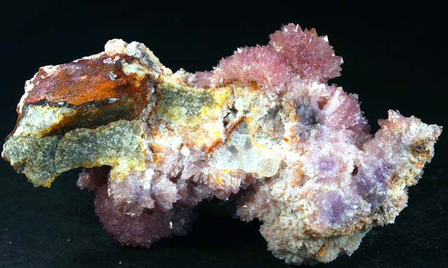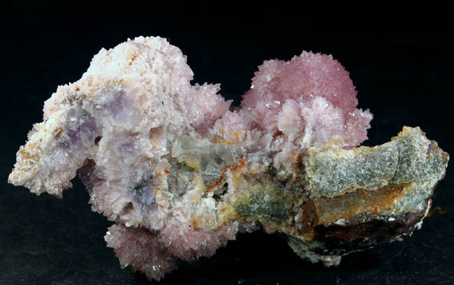 JC9770. Smithsonite. Refugio mine, Choix, Sinaloa, Mexico. 5 x 10 cm 189g. $275.00. Pink to slightly lilac pink specimen from this now exhausted locality. Specimen is not back lit. Nice color, sort of waxy luster. |