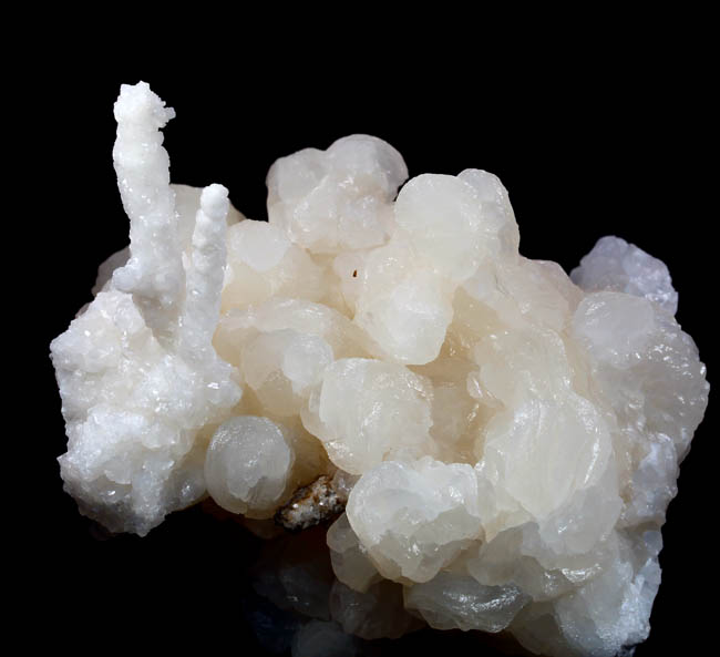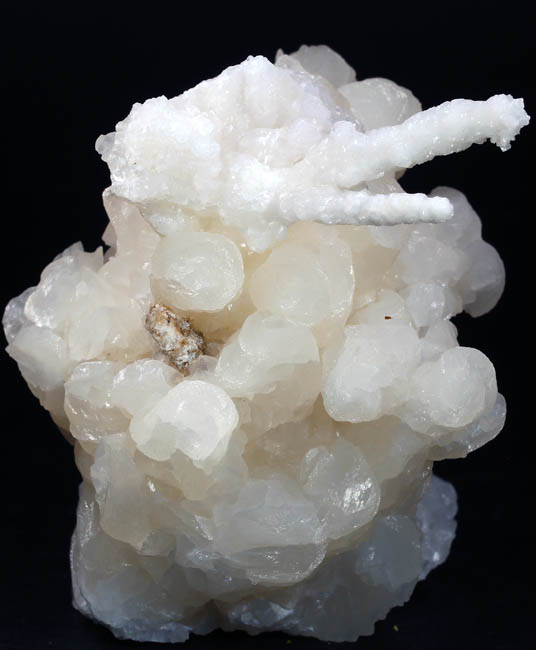 JC8984. Aragonite. Diamond mine?, Berryman tunnel, Prospect ridge, Eureka district, Eureka county, Nevada. 7 x 8 cm 344g $20.00 Bright white aragonite which looks nice all around. I photographed it from front, back, and sides. Not sure exactly which mine the Berryman tunnel is in. It has been suggested that they came from new work in the Diamond mine on Prospect ridge, however Prospect ridge has several mines on it, and they have been undergoing active exploration up until 2024. There have been several cave type areas in these mines that produced aragonite. This is a fine example. Collected prior to 2016 when I acquired it. |