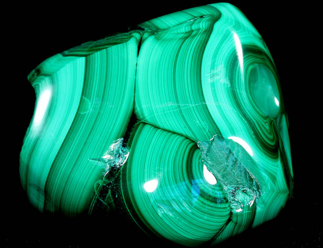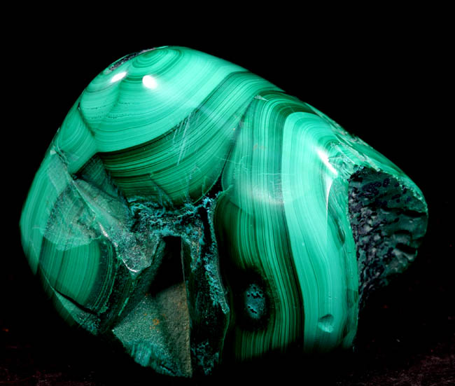 JC11805. Malachite (polished) L'Etoile du Congo Mine (Star of the Congo Mine; Kalukuluku Mine), Lubumbashi, Haut-Katanga, DR Congo. 3.5 x 5 cm 153g $18.00 |