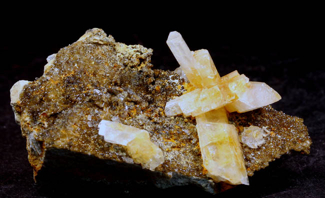 JC11870. Hydroxlherderite? Minas Gerais, Brazil. 3 x 6 cm 31g $20.00 Terminated crystal. Another one from the collection I purchased a few years ago, with no label. Crystals are on a very sparkly matrix of an unknown mineral, to me at least. |