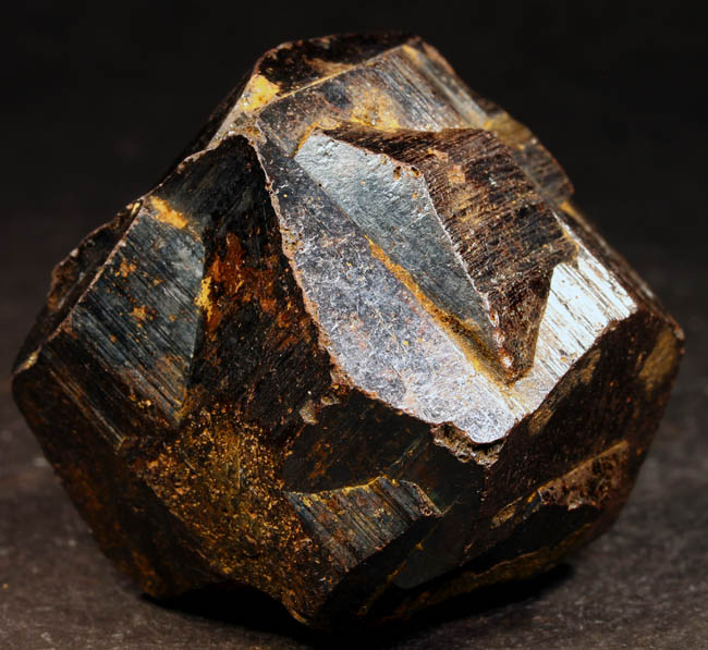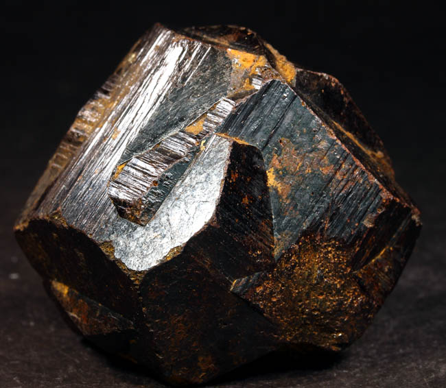 JC11906. Goethite after pyrite (iron cross twin). Gachala Municipality, Cundinamarca Dept., Colombia 3 x 4.5 x 4.5 cm 190g $50.00. Good miniature of these nice twins. I took photos of all sides. Pyrite "iron cross twin" specimen that was collected from the Guavió-Guatéque Mining District of Colombia. These twinned pyrite crystals are pentagonal dodecahedrons that underwent surface alteration to goethite, giving the exterior of the crystals their dark color. These came out around 2007 as I understand it. |