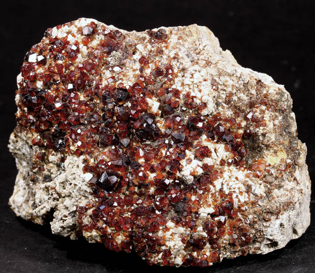 JC13859. Spessartine. Wushan Spessartine mine, Tongbei, Yunxiao Co., Zhangzhou, Fujian, China. 8 x 4 x 6 cm 262g. $25.00. Typical wine colored crystals on feldspar matrix. |