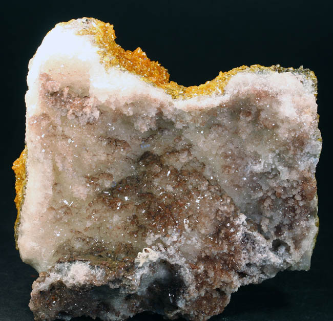 JC13867. Another view. You can see the yellowish color in the crystals from the included mimetite in this view. |