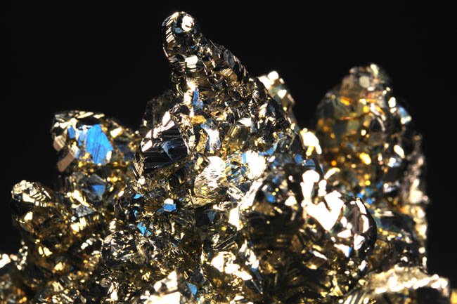 JC13901. Chalcopyrite, sphalerite, siderite. Nikolaevskiy Mine, Dalnegorsk, Dalnegorsk Urban District, Primorsky Krai, Russia. 5.5 x 4 x 2 cm 143g $80.00 Nice group of golden crystals. A group very similar to this is shown on mindat for this location. Specimens of this size and quality are rarely seen for sale these days...this is a classic. RESERVED |