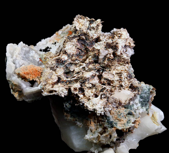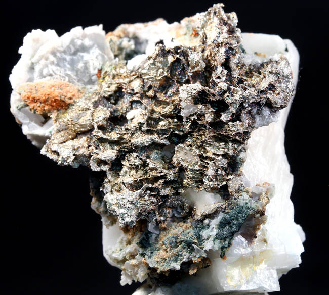 JC13930. Silver. Mass Mine, Mass Consolidated Mine, Mass City, Ontonagon County, Michigan. 4 x 3.5 x 2 cm $150.00. Nice miniature of silver from this rarely seen locality for silver. Sort of hackly silver etched out of calcite. Not sure when it was collected...the mine shut down in 1899. Rare to see one of these for sale. .EX: Keweenaw Minerals as old label with the specimen. Ex: James Smith collection. RESERVED |